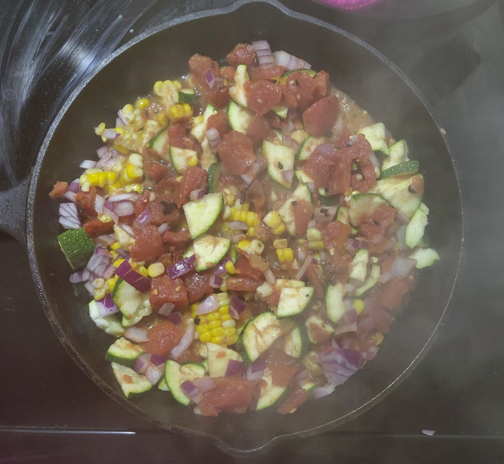 This simple flavorful dish is good on its own or you can add variations, use vegan sour cream and there you have it. Try adding legumes like pinto’s, black beans, lentils. How about grilled chicken, pulled pork, shrimp or fish. Or try it with bow tie pasta, skies the limit, hope you enjoy. Happy harvesting!